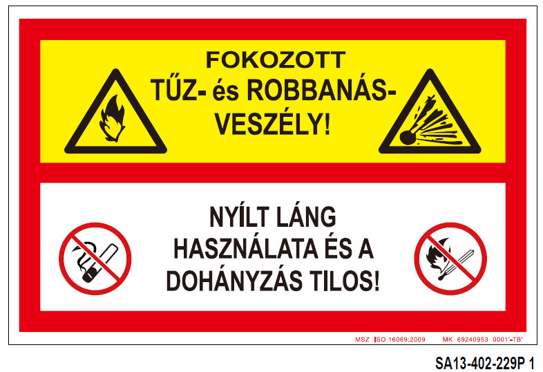Fokozott Tűz- és robbanásveszély! Nyílt láng használata tilos!