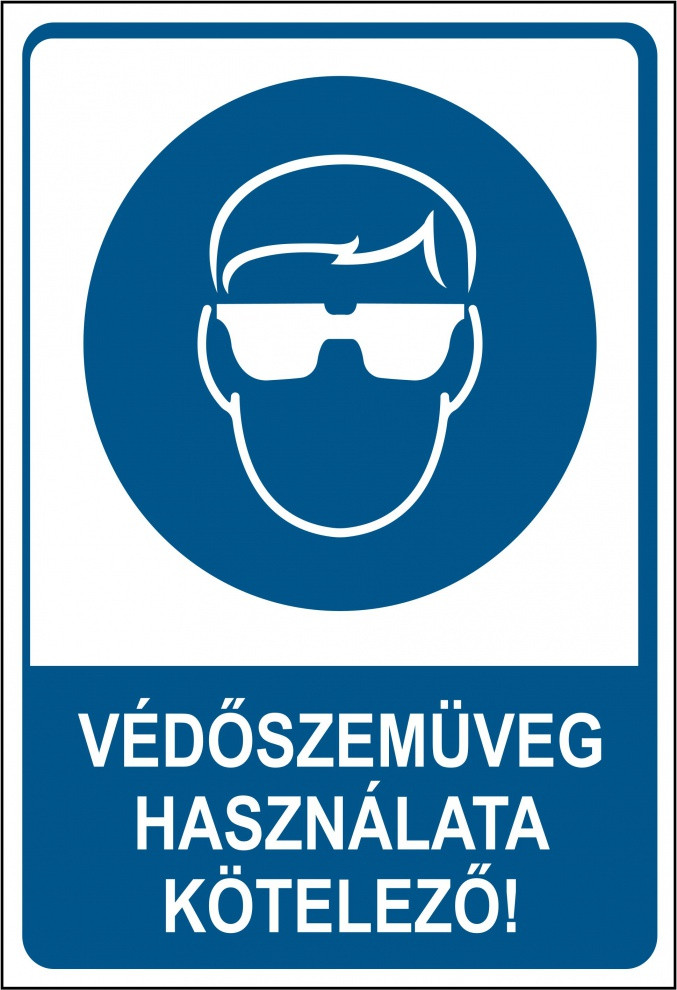 Az adott területen vagy tevékenység során a szemet érő sérülések elkerülése érdekében védőszemüveget kell viselni. Olyan munkahelyeken, munkaállomásokon kell kihelyezni (ragasztani), ahol a szemre ártalmas sugárzás vagy fizikai sérülés veszélye áll fent.