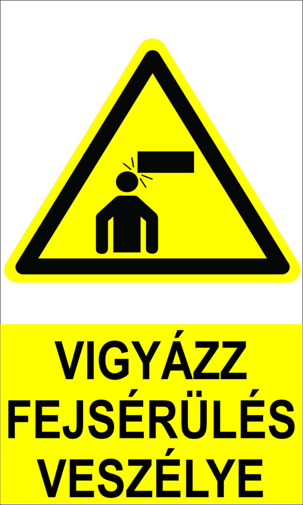 Ezek a táblák olyan helyszíneken kötelezőek, ahol alacsony áthidalók vagy fejmagasságban lévő akadályok találhatók, illetve a csúszásmentes felület az esések megelőzésére. (építkezésen, kerékpározáskor vagy kontaktsportoknál).