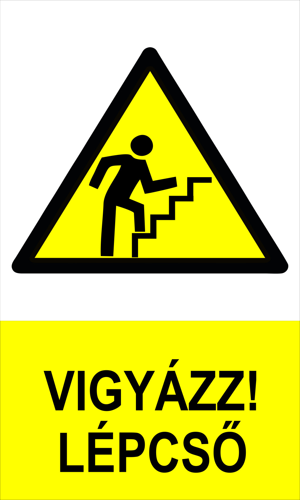 A lefelé vezető lépcső okozta botlás- és leesésveszélyre hívja fel a figyelmet, és kötelezően alkalmazandó minden olyan helyen, ahol szintkülönbség található, például lépcsőházakban, ipari csarnokokban, raktárakban vagy közlekedőfolyosókon; ez a jelzés segít megelőzni az esésből eredő sérüléseket.
