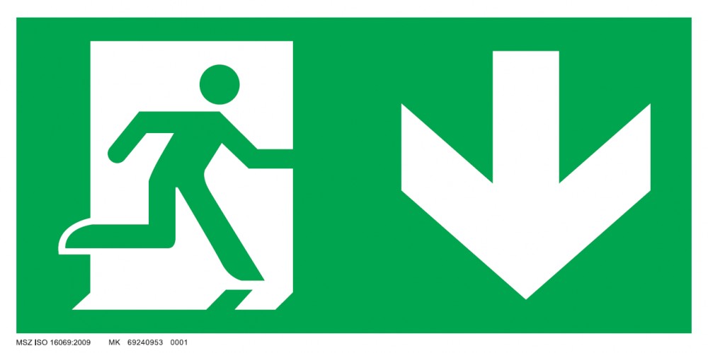 UV tábla - Menekülési út - le, ajtó bal oldalon ISO